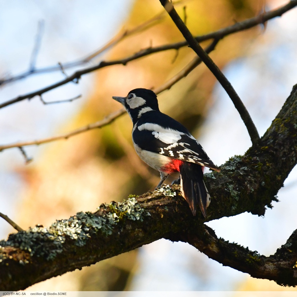 Reconnaissable à son étonnant plumage noir et blanc le pic épeiche tambourine en ce moment pour délimiter son territoire.
